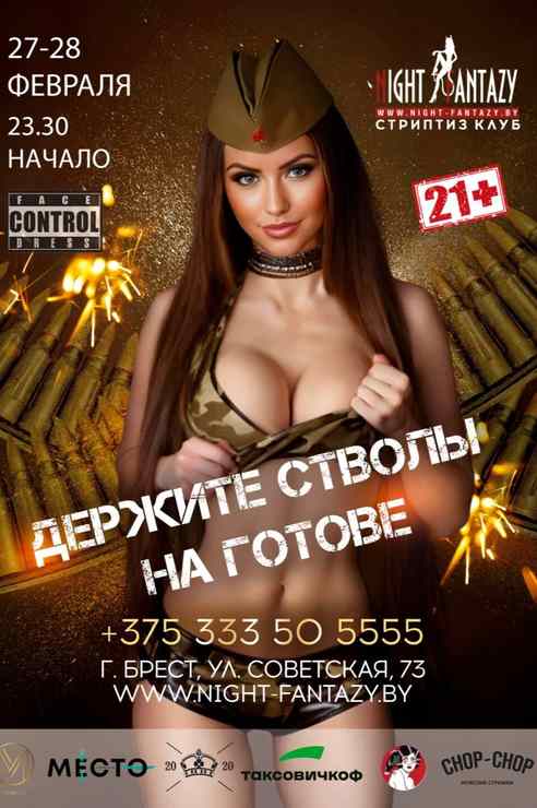 Главным украшением клуба Night Fantazy в Бресте являются его обворожительные девушки, которые станут залогом Вашего фантастического времяпровождения. Именно они смогут воплотить Ваши фантазии в реальность, устроят великолепное зрелище для Ваших глаз, пробудят все органы чувств, превратят обычные серые будни в незабываемый и яркий праздник.